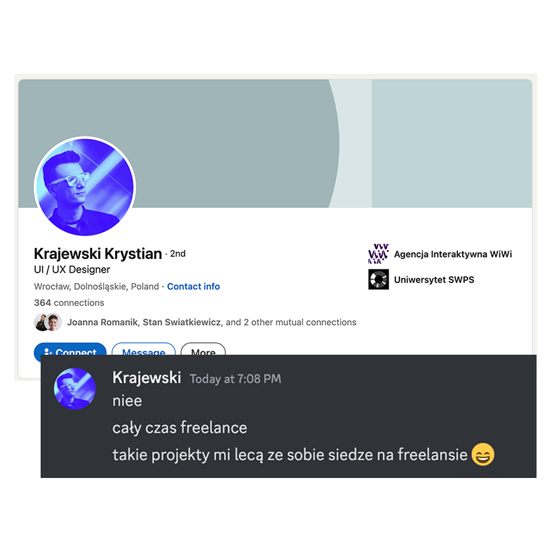 - Nie skończył nawet portfolio :) Udało mu się załapać pracę na freelance, następnie kilka innych projektów i posady jako product designer
