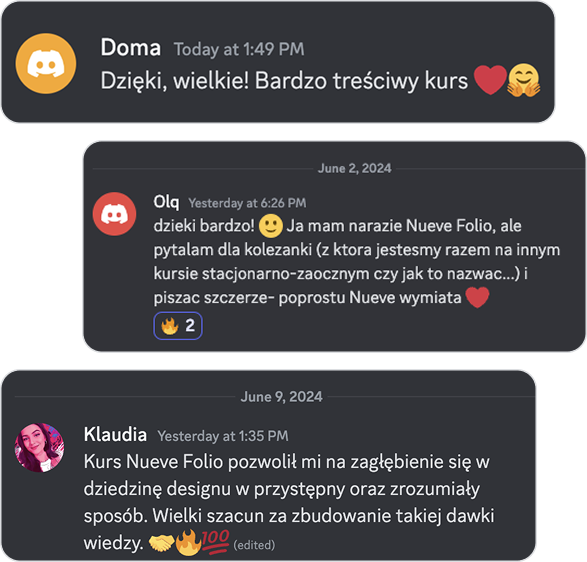 Do udziału w Nueve Folio 2.0 zapraszamy wszystkie osoby, które przeszły już przez kurs/kursy poświęcone UX/UI/web designowi lub uczyły się na własną rękę i chcą stworzyć wyjątkowe portfolio. Program jest odpowiedni także dla osób, które pracowały już w designie i chcą zmienić pracę, przebranżowić się lub po prostu dostosować swoje portfolio do wymagań rynku w 2026 roku.